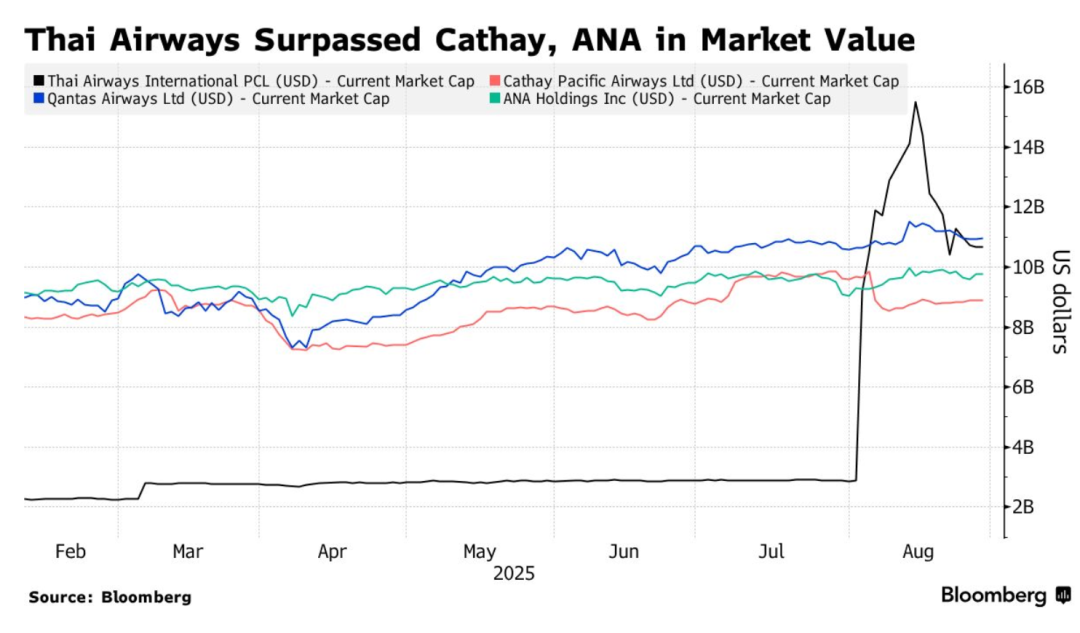据彭博数据显示,泰航约一半收入来自亚洲航线,欧洲航班占收入三分之一。尽管欧洲、印度和澳大利亚航班需求旺盛,下半年核心业务盈利预计保持强劲,但航线扩张能否完全缓解客源下滑,仍存在很大变数。