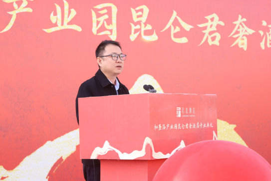 典礼伊始,新疆天创投资发展有限公司董事长方亮先生上台致辞。他表示,昆仑君奢酒店从规划到落成,始终紧扣兵团及师市 “提升城市功能、推动高质量发展” 要求;选择与逸柏合作,既源于其行业硬实力,更基于双方理念的高度契合。