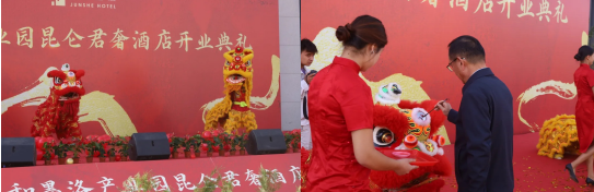 吉祥锣鼓声起,政企领导共同为酒店剪彩。庆典现场,喀什专业舞狮团队献上表演,娄师长和谢炜董事长一起为祥狮点睛。随后的新疆特色歌舞表演将庆典推向高潮,生动展现了中华文化的博大精深和新疆这片土地的热情奔放。