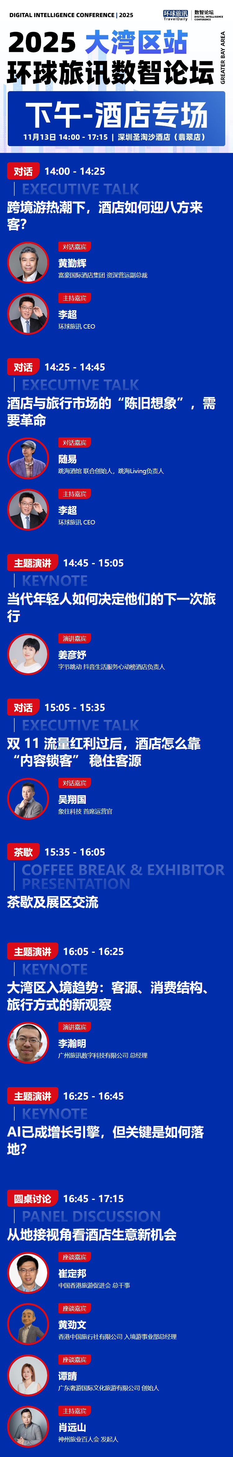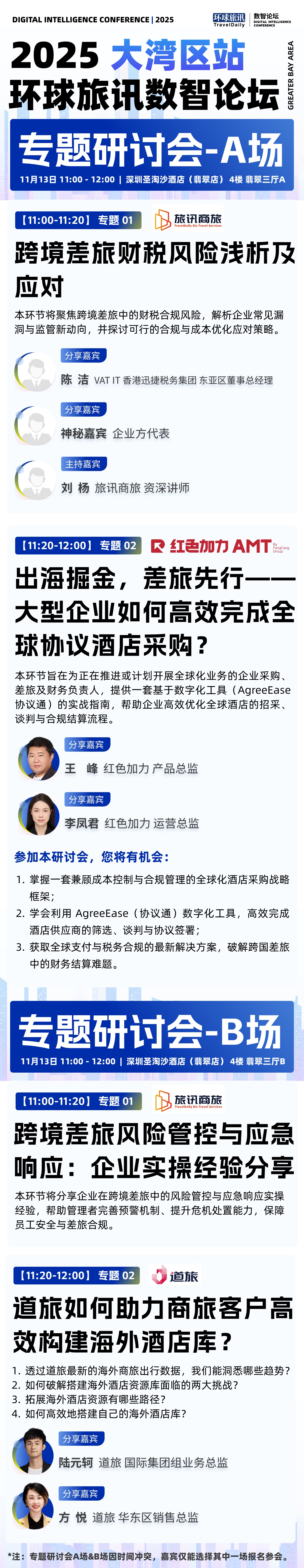 ☑ 如您已报名“2025 环球旅讯数智论坛·大湾区站”全场活动且已审核通过,请点击链接进入【同期活动】报名通道,勾选对应研讨会,可免除持票人信息二次填写。