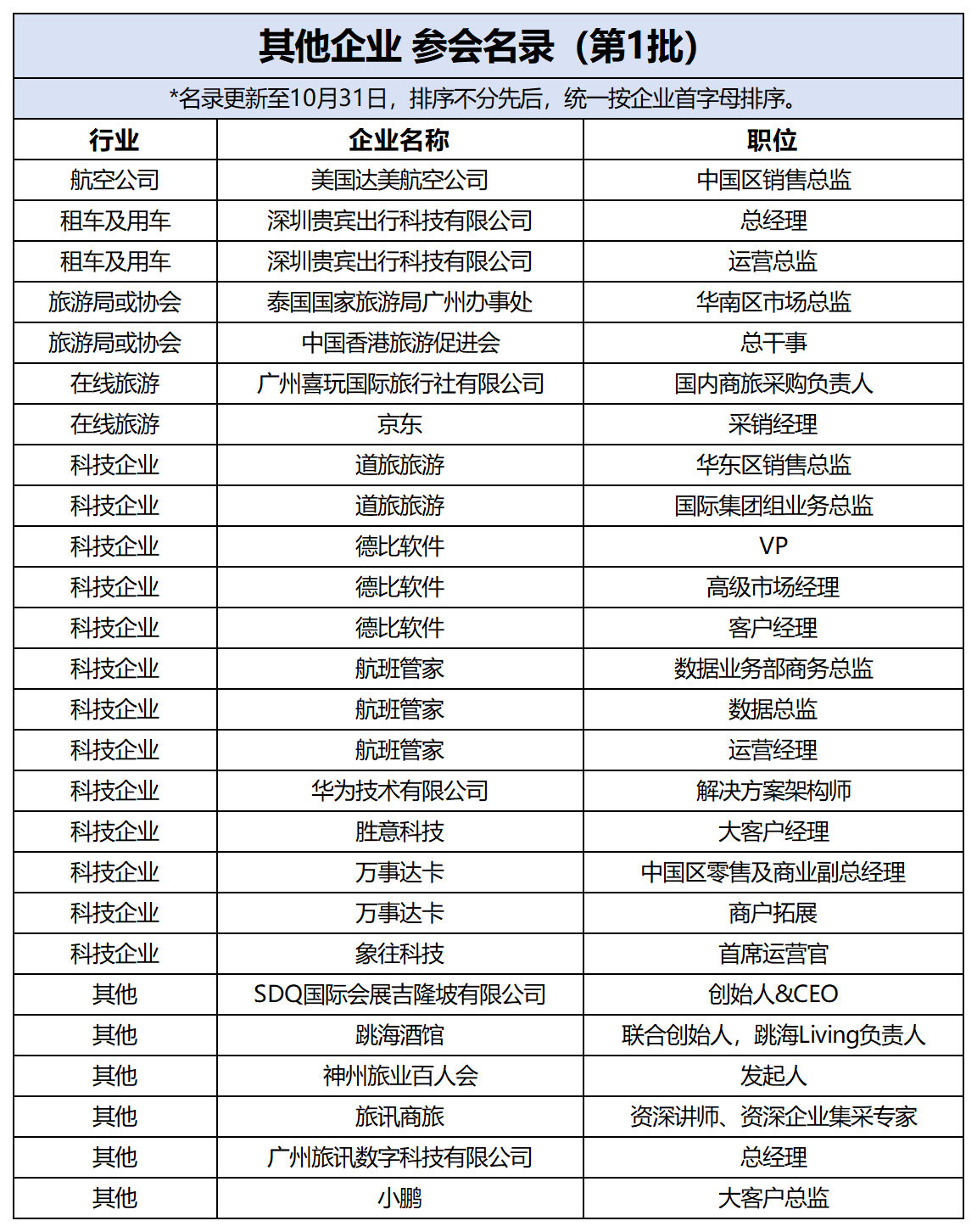 TMC、旅行社、机票代理人的副总经理或VP级别及以上嘉宾。