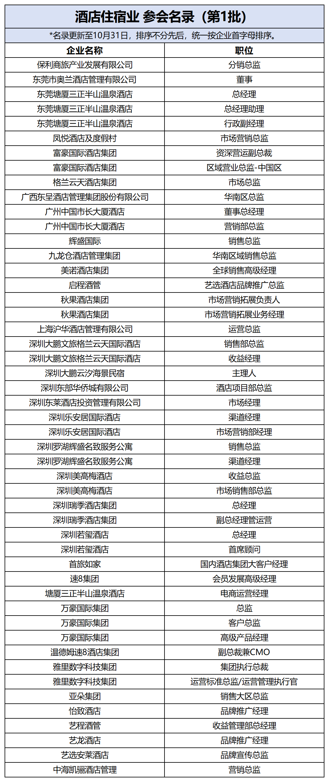 酒店和民宿等住宿业态、 目的地景区及主题乐园(含旅游局)等文旅项目 、OTA、 航空公司、用车企业的CXO岗/战略管理岗、市场营销岗/品牌管理岗/公关岗、收益管理岗、渠道管理岗(新媒体运营岗)、会员及用户运营岗、数字化转型岗、技术或产品岗的经理级别及以上嘉宾;