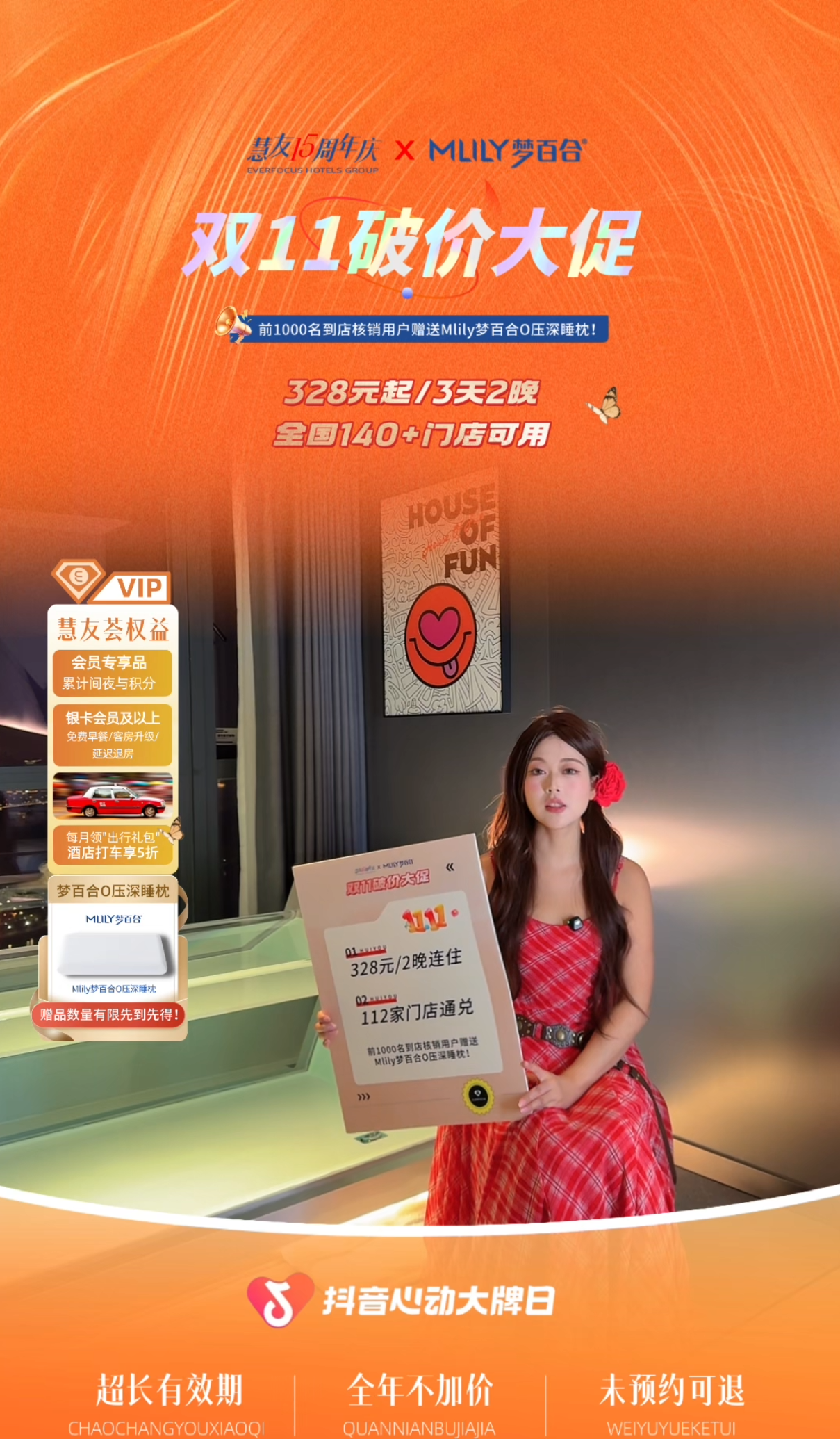 本次直播活动构建了“明星引领+品牌发声+员工参与+达人扩散”的立体化传播模式。明星马可的直播间首播引爆关注,连续七天的内容输出持续扩大活动影响力;慧友酒店官方账号与员工账号协同配合,从不同角度诠释品牌的专业与温度;更值得一提的是,慧友酒店集团联合创始人何依依女士亲临直播间,与用户深度互动并送出多项福利,彰显了品牌对用户体验的高度重视。