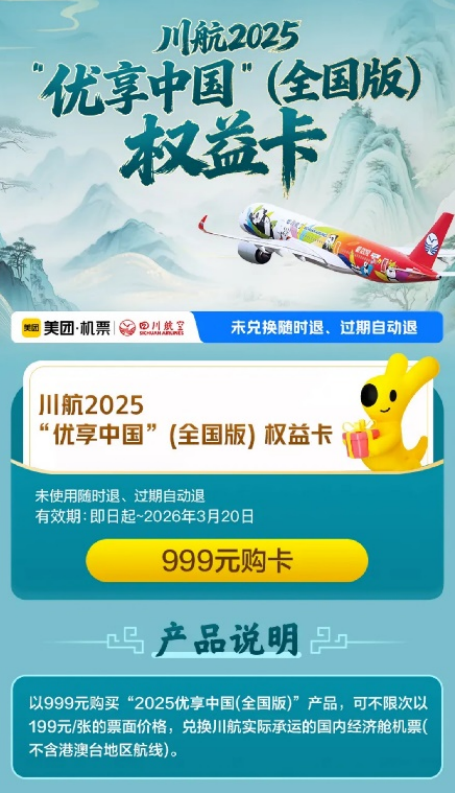 川航“随心飞”美团单日卖爆,美团旅行:已紧急补货,可继续购买