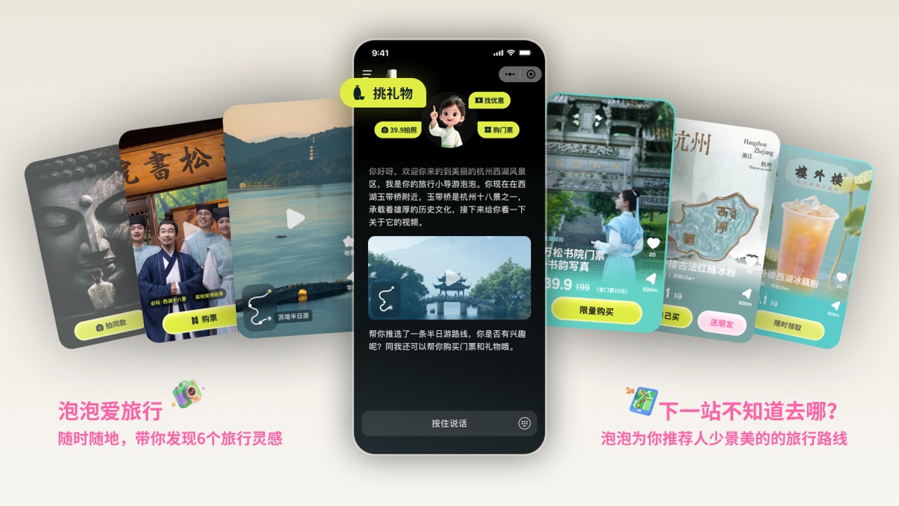 北京比利信息技术有限公司(以下简称“比利信息”)正是在这样的指导与支持下,探索一种新的可能:通过 AI Agent 激活流量、提升游客体验,并创造新的增量收入。在西湖管委会的指导下,比利信息推出了西湖景区首个 AI 智能体项目——“泡泡爱旅行”。这款旅游推荐式智能体自上线以来逐步成熟,被视为免门票时代景区商业模式创新的一次重要尝试。
