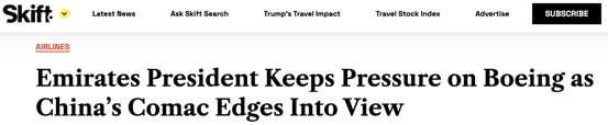 阿联酋航空总裁:看好中国商飞,施压波音