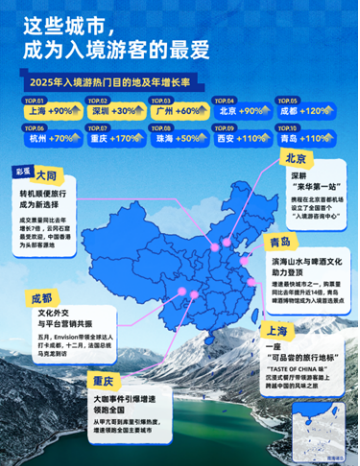 海外游客来中国玩什么?去什么城市玩?2025年的答案更加多元和深入。报告揭示了目的地“下沉”和“半径扩大”的新趋势。除了北京、上海、广州等传统门户城市外,海外游客开始深入中国内陆,寻找独特的文化体验。