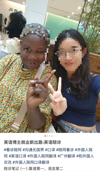 比如,广州的一名大三学生小R,学新闻但酷爱英语,会利用课余时间兼职做英语翻译,在兼职陪同翻译的过程中,小R发现了老外的看病需求,带客人去医院、帮忙挂号、翻译医嘱等等。