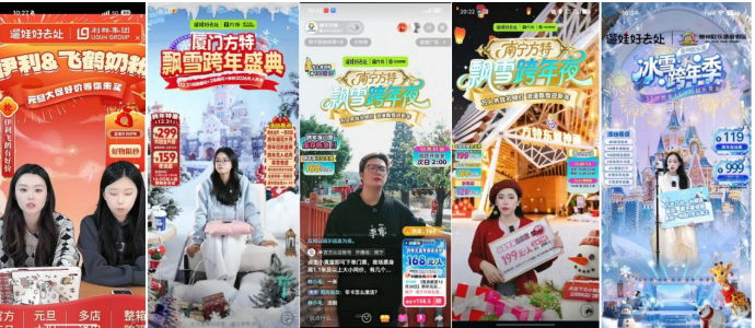 在线上,活动打造了“双旦遛娃狂欢周”主题营销节点,联合伊利、飞鹤等头部母婴品牌,以及厦门方特、南宁方特、泉州欧乐堡度假区等亲子目的地,搭建“遛娃好去处”专属货盘,并通过直播冲锋机制,在关键消费日集中引爆。活动期间,商家通过专场直播等形式,将节日氛围、专属货品与限时优惠紧密结合,为宝妈群体提供了“即看即买”的一站式过节解决方案。