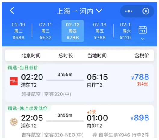 有抢到特价机票的飞友分享经验:“上海飞河内,再转大巴回南宁,全程花费不到千元,虽然比直飞耗时久,但能省下好几千,值了。”