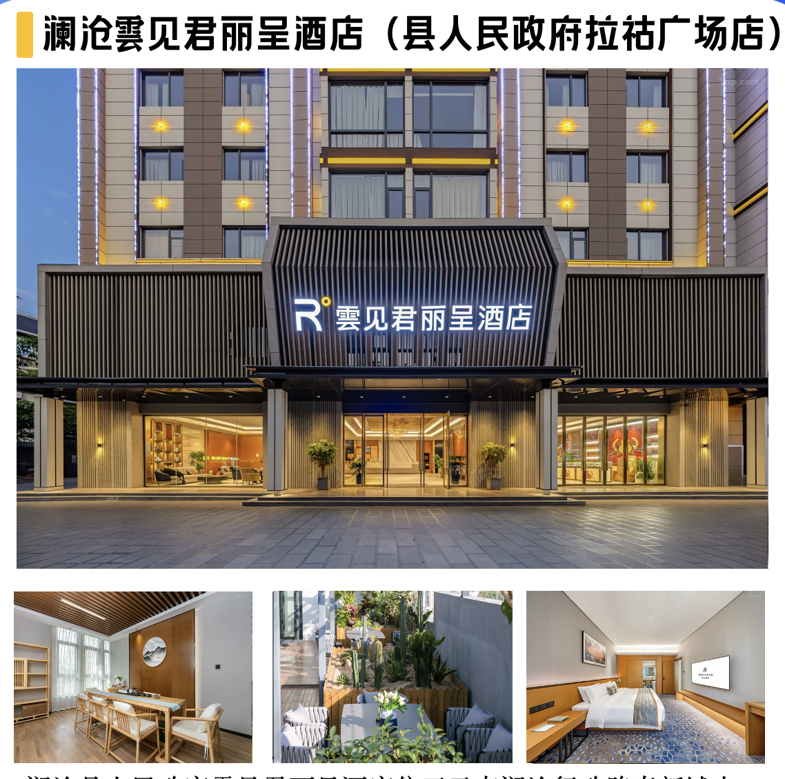 澜沧县人民政府雲见君丽呈酒店位于云南澜沧行政路泰新城小区1幢,紧邻澜沧客运站、牡帕密帕葫芦广场、澜沧博物馆,30分钟车程覆盖拉祜风情园、澜沧街、澜沧景迈机场,交通方便。酒店拥有多种雅致客房,配套洗衣房、健身房、茶室及多功能会议室,并提供中餐团餐服务,花园餐厅兼顾私密与惬意,满足商务差旅与休闲度假多重需求,是深入茶源秘境的悠然居所。