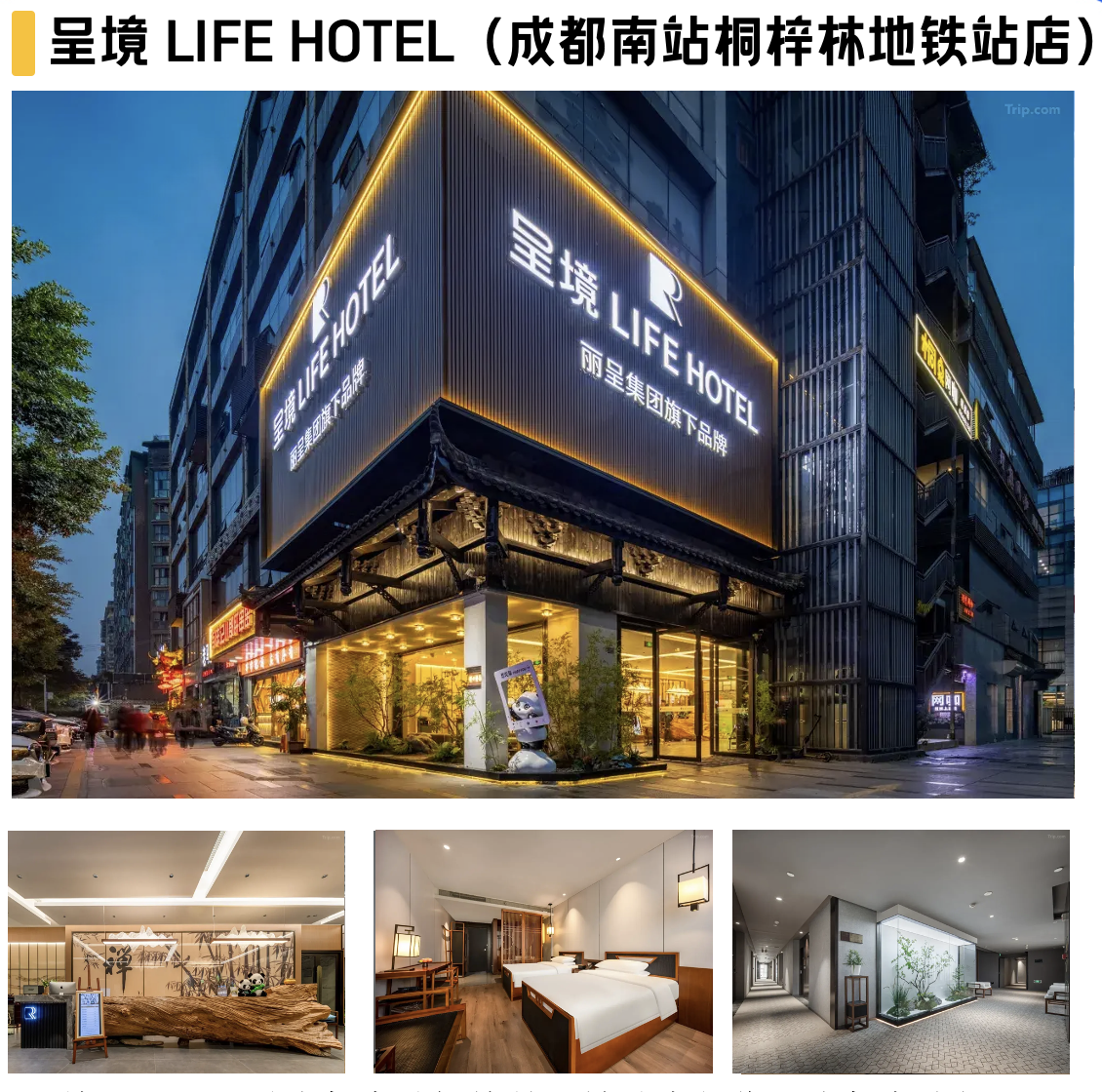呈境Life Hotel(成都南站桐梓林地铁站店)位于成都市武侯区长寿路6号,步行15分钟汇聚成都南站、桐梓林地铁、优悦奥莱;车程15-25分钟内轻松覆盖双流机场、天府广场、春熙路及金融城商圈,地理位置优越。酒店定位禅意主题商务酒店,客房以橡木家具搭配智能窗帘,中庭景观与茶空间相映成趣,白茶香氛萦绕其间。兼具商务便捷与禅意宁静,让商旅出行在繁华都市中寻得一方静谧。在既能高效链接城市繁华,亦能在茶香萦绕间,觅得一份闹市中的身心平衡。