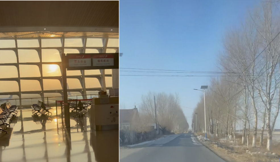 同样回东北,在杭州读书的翟士超要花上“半天时间”。这并不是一个形容词,而是翟士超回家路的真实时长。1月30日,她坐早上六点半从杭州起飞的航班,先在邯郸停留45分钟,接近中午抵达哈尔滨。在哈尔滨停留近六小时后,再次坐飞机飞往加格达奇,落地大兴安岭鄂伦春机场时接近晚上7点。