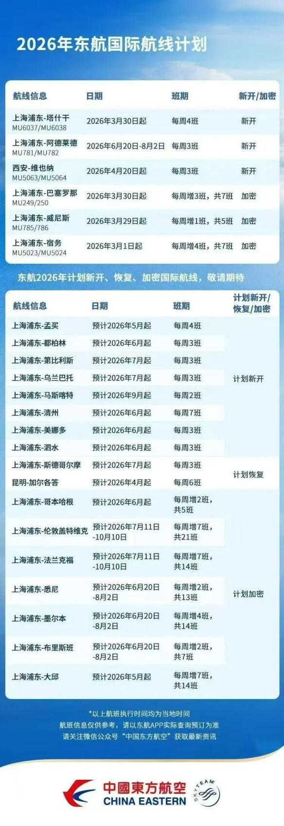 东航近日重磅官宣,2026年国际航线大升级。