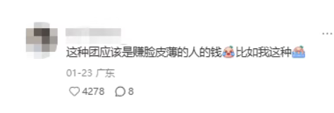就像网友所描述的,“这种团应该是赚脸皮薄的人的钱。”
