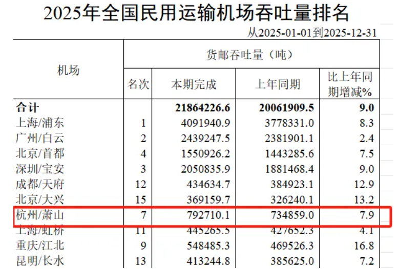 这场逆袭的背后,是萧山机场“规模扩容+网络升级+效能提升”的三维发力,精准踩中区域航空需求的增长点。