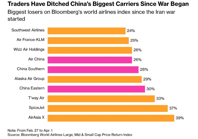 自2月28日冲突爆发以来,国航、东航、南航三大国有航司在港股市场跌幅均超 26%,跻身彭博全球航空股价格回报指数中跌幅最靠前的阵营,与市场预期形成尖锐反差。