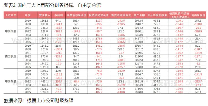 2025年三大航业绩明显分化,南航盈利8.57亿元,成为疫情后首家年度扭亏的骨干航司;但国航亏损17.7亿元、东航亏损16.33亿元,仍未走出亏损区间,整体抗风险能力依然薄弱。