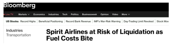 尽管Spirit仍维持正常航班运营,但原本计划在今年夏季完成的破产重整,正在被不断上升的燃油成本所动摇。