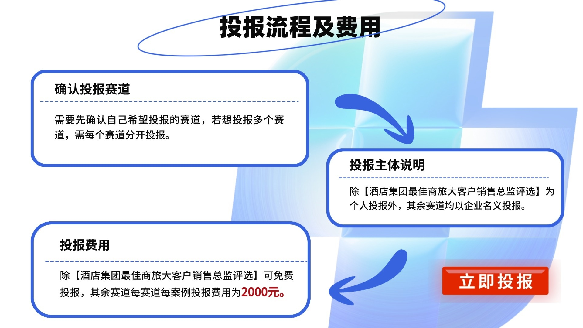 • 如您选择个人类赛道,即酒店集团最佳商旅大客户销售总监评选,可享受免费投报;