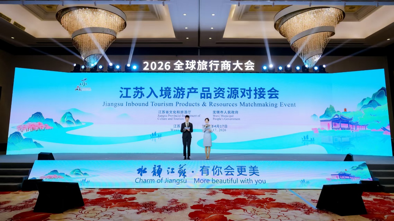 为深入践行习近平文化思想,扎实推进文旅部《入境旅游促进计划(2024—2026年)》,着力推动江苏入境旅游市场实现质的有效提升和量的稳步增长,4月17日,由江苏省文化和旅游厅、无锡市人民政府主办的“水韵江苏·2026全球旅行商大会”正式启幕。