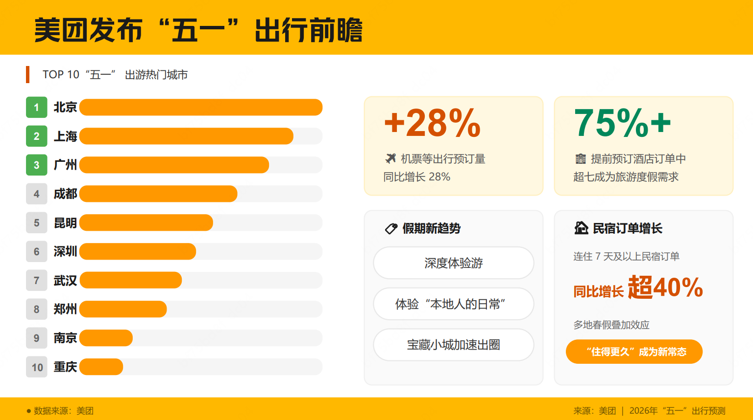 美团“五一”出行预测:机票等出行预订量增28% 北京、上海、广州位列热门目的地