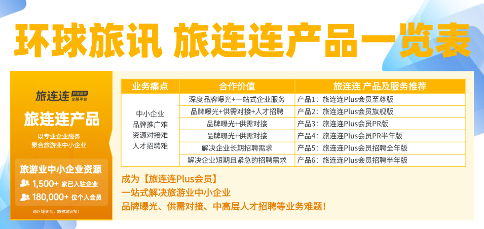 旅连连作为环球旅讯旗下一站式企业服务平台,主要为旅游业中小企业提供企业动态、商机、招聘、报告等企业信息发布服务,助力中小旅游企业解决品牌推广、商机对接、中高层人才招聘三大业务难题。