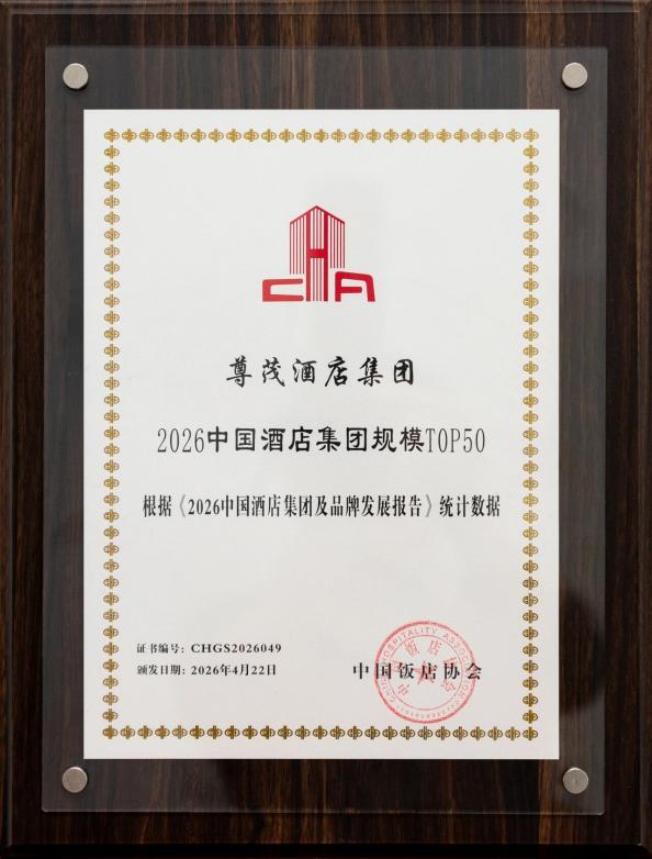 凭借持续稳健的规模化发展实力,尊茂酒店集团再次荣登“中国酒店集团规模TOP50”榜单,这是集团自2020年以来连续第七年获此殊荣,充分彰显了其作为优秀民族酒店品牌的持久发展动能。